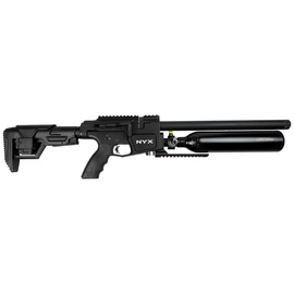 Reximex NYX Compact 4.5 mm – compact, tactical PCP air rifle with Side Lever cocking, shot regulator, fully adjustable AR-style telescopic stock, and integrated suppressor. Available in calibers: 4.5 mm, 5.5 mm, 6.35 mm.