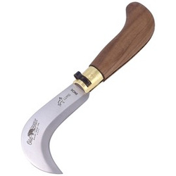 Pruning Walnut 170mm folding knife for gardening, the popular "sickle" from Antonini Old Bear. Equipped with a profiled Hawkbill main blade, which will make pruning plants easy and fun. Walnut handle grips.
