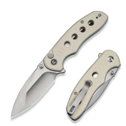 Triptych Ivory G10, Satin - slim EDC folder by Civivi, Blade made of Sandvik 14C28N steel and comfortable G10 composite handle. Intuitive button lock. Minimalism, durability and precision in everyday use.