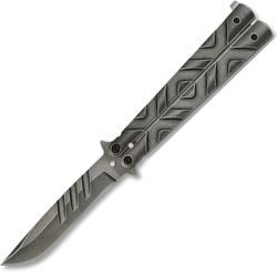 Stone Gray Steel, Gray Stonewashed – a classic balisong butterfly knife from Martinez Albainox with an all-steel construction, stonewashed finish, and symmetrical geometry. A stylish and durable choice for collectors and enthusiasts of display knives.