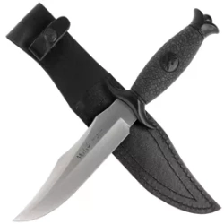 Muela Big Mountain 95-221 Black ABS, Satin, large hunting and outdoor knife made of X50CrMoV15 stainless steel. ABS plastic Handle guarantees a comfortable and secure grip. Hand-stitched leather sheath. Tradition and modernity in one tool!