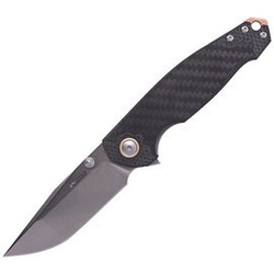 Orso Carbon Fiber Stonewashed exquisite design by Danish knifemaker Jens Anso. A slim knife that opens with a quick flipper flipper assisted by a ball bearing system. An improved version of the Orso knife with Lohmann LO-QPM 20-4 stainless steel blade.