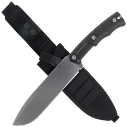 Numen Black G10, Satin, a large survival knife designed by Daniele Dal Canto, a professional instructor of survival techniques. Powerful blade of Böhler N690 steel, full tang construction. Handle made of G10, Sheath made of cordura with M.O.L.L.E.