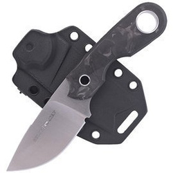 KOI Carbon Fiber, Satin N690 lightweight, compact fixed blade knife that is handy and easy to carry. Designed by respected knifemaker Jesper Voxnaes. Features a strong blade with an extremely versatile rounded cutting edge.