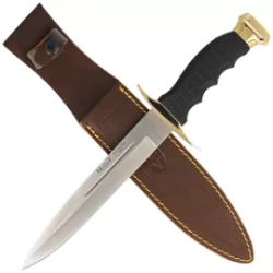 95-191 Black Rubber, Satin large survival knife made from 420H steel. Handle scales crafted from flexible, textured elastomer ensure a comfortable grip. Hand-stitched leather sheath. Perfect blend of tradition and modern design in one versatile tool!