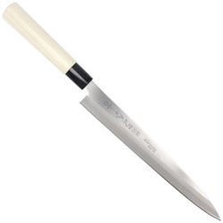 Due Cigni Sashimi 215mm in 420JS stainless steel. Made by artisans in Japan, with a comfortable round maple wood handle. The long, narrow blade is perfect for cutting meats or fish for sushi. Note!!! Very sharp!!!