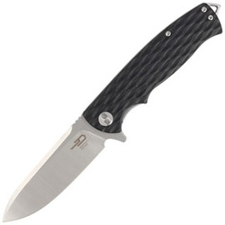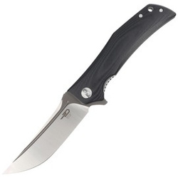 Scimitar Black G10, Gray / Satin, a handy EDC folder with a slightly exotic look. Made with characteristic Bestech care. G10 facings on the handle, blade made of proven D2 tool steel, all at an excellent price!