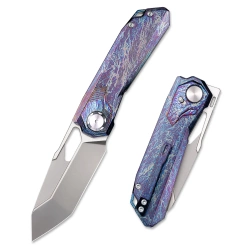 WD107 Black DLC Titanium, Hand Grinding/Black DLC, compact EDC folding knife, for users who expect the highest quality. Universal Blade made of Böhler M390 steel, Handle made of durable titanium, intuitive button lock.
