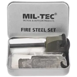 Mil-Tec Fire-Starting Kit – Reliable for survival and camping. 3,000°C fire starter, cotton tinder, and solid fuel in a metal container. Compact and moisture-resistant!