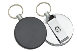 Barbaric Retractor with Clip Black ABS / Mirror Steel, 100cm (16248) - compact EDC accessory with a 100cm drop-down length cord, durable ABS housing. Ideal for organizing your equipment in the field and on a daily basis.