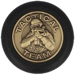 54108 - optional steel head (cap) Logo Cap with the operator's engraved in brass silhouette and the word Tactical Team. Fits telescopic batons ASP Friction Loc also Sentry. It improves the grip, personalizes and makes your bar look more attractive.