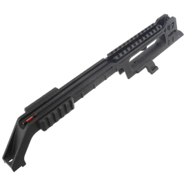 Velox Black .25 a semi‑automatic PCP pistol from Hatsan with a semi‑auto reloading system. Ideal for dynamic shooting. Two 50cc air tube, filled to 250 bar, ensure long-lasting shooting. Available in 4.5 mm, 5.5 mm, and 6.35 mm calibers.