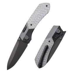RT-Meteor RTPT-BD Black DLC Titanium/Gray Carbon Fiber, Black DLC - premium folding knife with M390 steel Blade and Titanium type Handle enhanced with Carbon Fiber composite inlays. Technical precision, modern aesthetics and maximum durability.