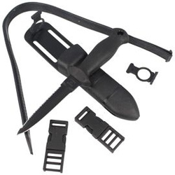 TORPEDO 9 BE BLACK, doskonały nóż nurkowy (back-up) firmy MAC. Nieodzowny element wyposażenia każdej wyprawy nurkowej. Głownia dagger ze stali nierdzewnej W 1.4116 o dużej odporności na korozję, pokryta nierefleksyjną powłoką IDROGLIDER GOLD® Black...