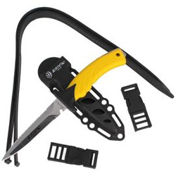TORPEDO 9 BE YELLOW, doskonały nóż nurkowy (back-up) firmy MAC. Nieodzowny element wyposażenia każdej wyprawy nurkowej. Głownia dagger ze stali nierdzewnej W 1.4116 o dużej odporności na korozję, pokryta nierefleksyjną powłoką IDROGLIDER GOLD® Black...