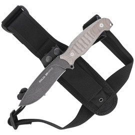 Golia Evolution Black Canvas Micarta Dark Stone Washed design by Tommaso Rumici duży, mocny nóż ze stałą głownią. Skierowany do miłośników bushcraftu, survivalu, myślistwa. Kuty z jednego kawałka stali nóż Viper posłuży Ci przez lata!