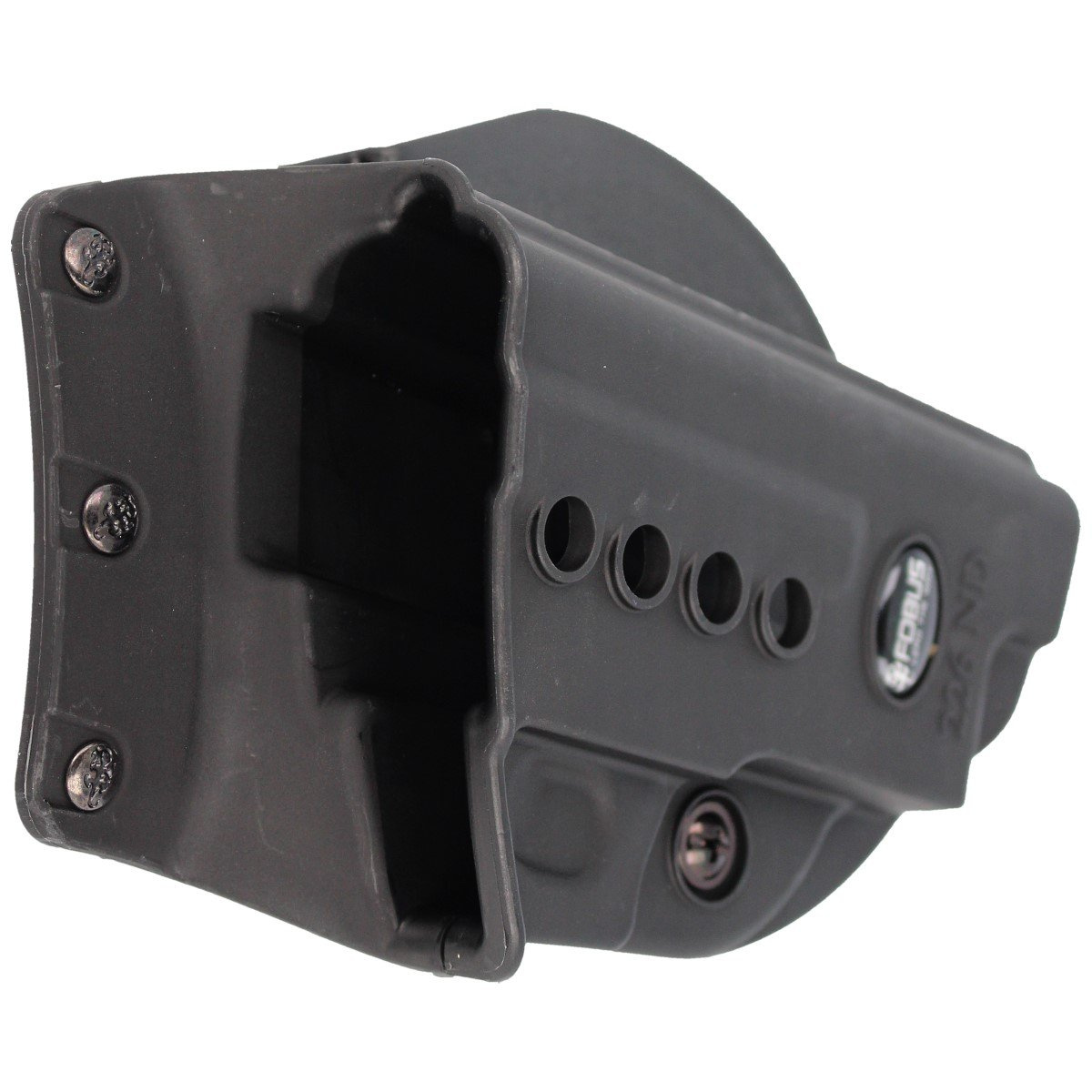 Type of holster - ND / Evolution-2 (New Design / E2 Series) - a new generation of Fobus holsters. Made of one piece of plastic, it is light despite additional functions. It contains an additional metal strip that strengthens the rivets that attach the holster to the fin, which improves its strength and reliability. Weight reduction was achieved by using several holes on the surface of the holster. The ND / E2 holsters have an additional bolt at the bow allowing individual adjustment of the holster's clamping force. The adjustment affects the force with which the weapon is kept in the holster and with what force it is pulled out of the holster. The low profile makes it easier to hide the weapon, making it more comfortable to carry. The holster protects the weapon well against damage, there is no tendency to move. Available in right-handed version.