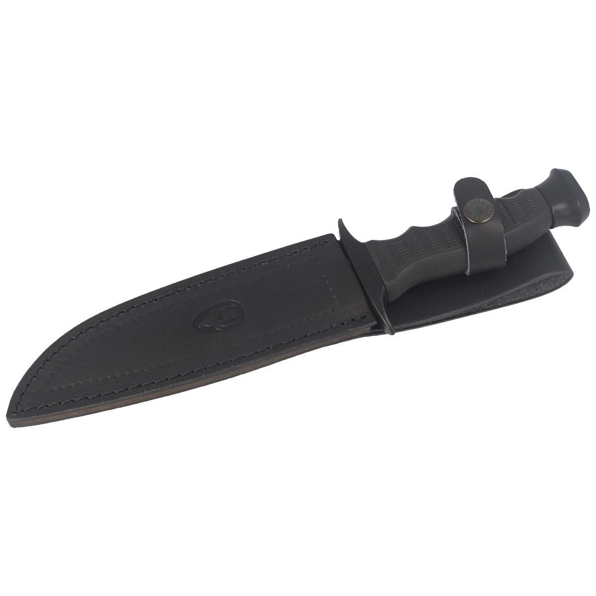 Handle - knurled cladding made of elastomer in black color, finished with a steel head. The soft rubber handle fits well in the hand, the knife does not slip with wet hands. Strong and secure grip allows you to make precise knife movements.
