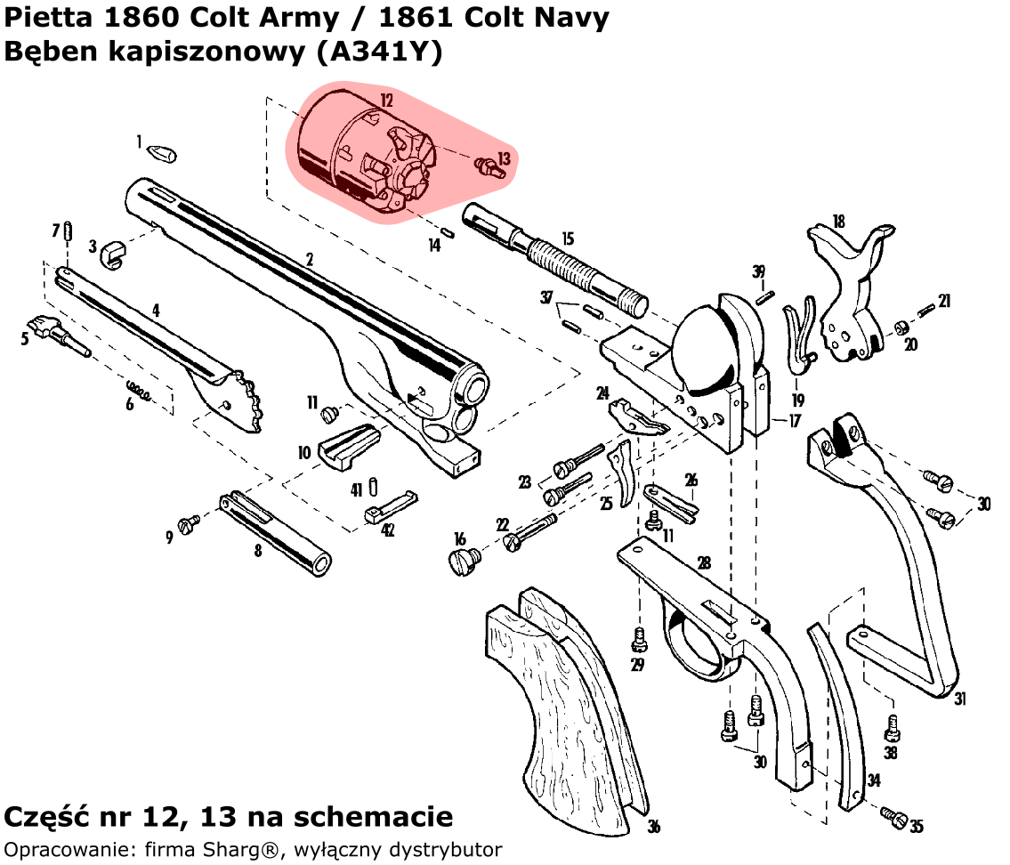 Diagram of the revolver: 1860 Colt Army / 1861 Colt Navy