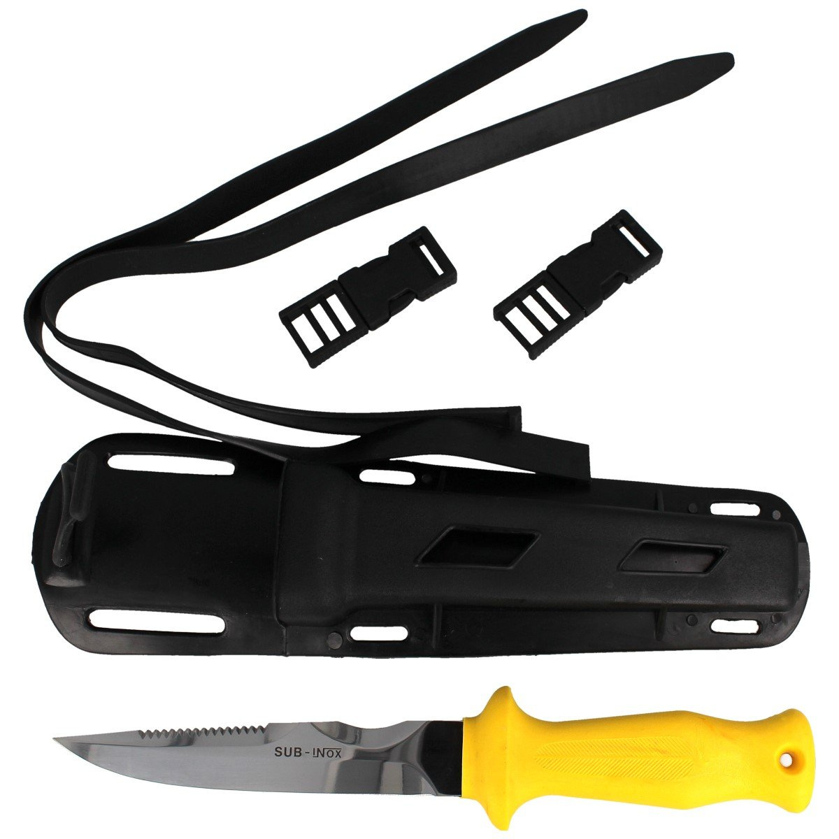 SUB 16 C YELLOW universal knife for a diver with a solid steel blade Stainless Steel about full tang construction made by the Italian Company MAC Coltellerie. Bestseller - excellent price-performance ratio - an essential piece of equipment during the dive!