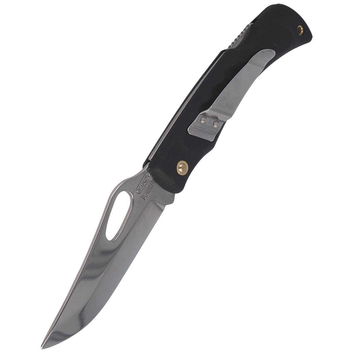 Crocodile Black ABS, Mirror with Clip designed for everyday use, a medium sized folding knife at a great price. Polished stainless steel blade, lightweight ABS plastic handle, metal clip, typical EDC.
