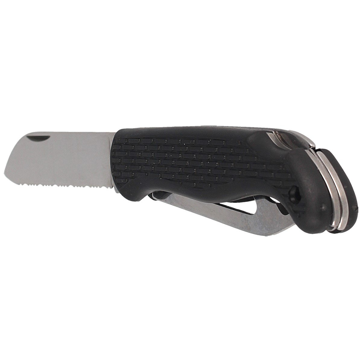 Boat 2 Black PP/TPE, Satin, a sailing knife and sophisticated tool created by the renowned Italian company MAC Coltellerie. The ergonomic handle made of polypropylene (PP) is covered with a non-slip thermoplastic elastomer (TPE), which ensures a secure grip even in difficult sea conditions. The blade is made of high-quality 1.4034 stainless steel, which is characterized by its excellent corrosion resistance and good sharpness retention. The knife has two blades offering four functions, including a shackle key, making it indispensable for deck work. The back lock mechanism ensures safe use by preventing accidental blade closure. The precise workmanship and the use of the highest quality materials make Boat 2 a reliable and durable tool that meets the expectations of even the most demanding sailors. Its functionality and aesthetics make it not only a practical but also an elegant addition to the equipment of every sailing enthusiast.