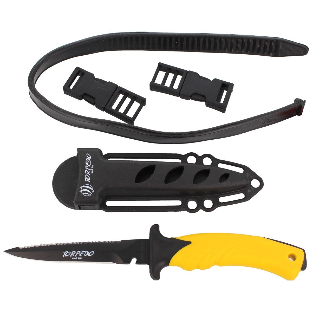 TORPEDO 11 BE YELLOW, a diver's knife (back-up) with a fixed blade coated in matte black. Manufactured by the Italian company MAC Coltellerie. An indispensable piece of equipment for every diving expedition.