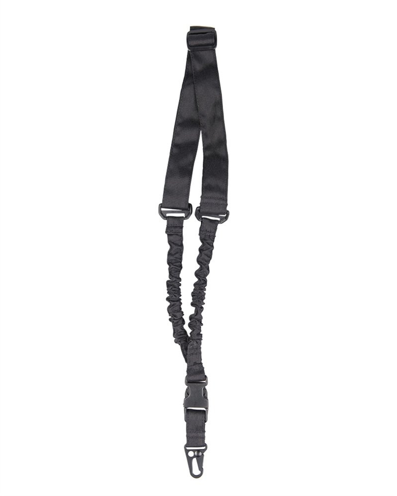 - Zawieszenie jednopunktowe firmy Mil-Tec typu Bungee do przenoszenia broni długiej. Wykonane ze 100% polyestru. Wygodny szeroki pas 45mm z regulacją długości zapewnia wygodne ułożenie na ramieniu. Mocowanie za pomocą karabińczyka umożliwia szybkie wypięcie