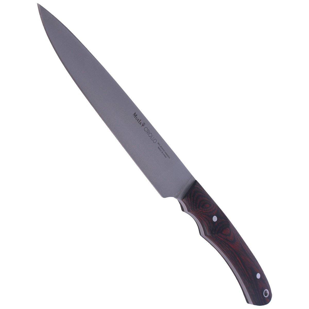 - Criollo-17 larger of the 2 versatile knives in COROLLO line. Blade made of molybdenum-vanadium steel, with handle scales crafted from coral wood laminate. Finger choil provides enhanced control over knife. Includes leather sheath made of natural leather.