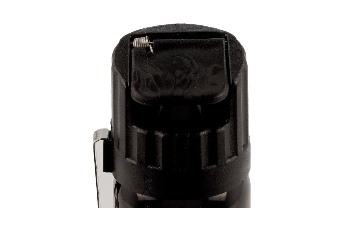 Head - FLIP-TOP CLIP with a clip made of damage-resistant polymer. The ergonomic shape of the head facilitates quick selection and use of the pitcher. The Flip-Top flap protects against accidental use. The design of the head guarantees the repeatability of the gas cloud (range), facilitating effective and efficient defense.