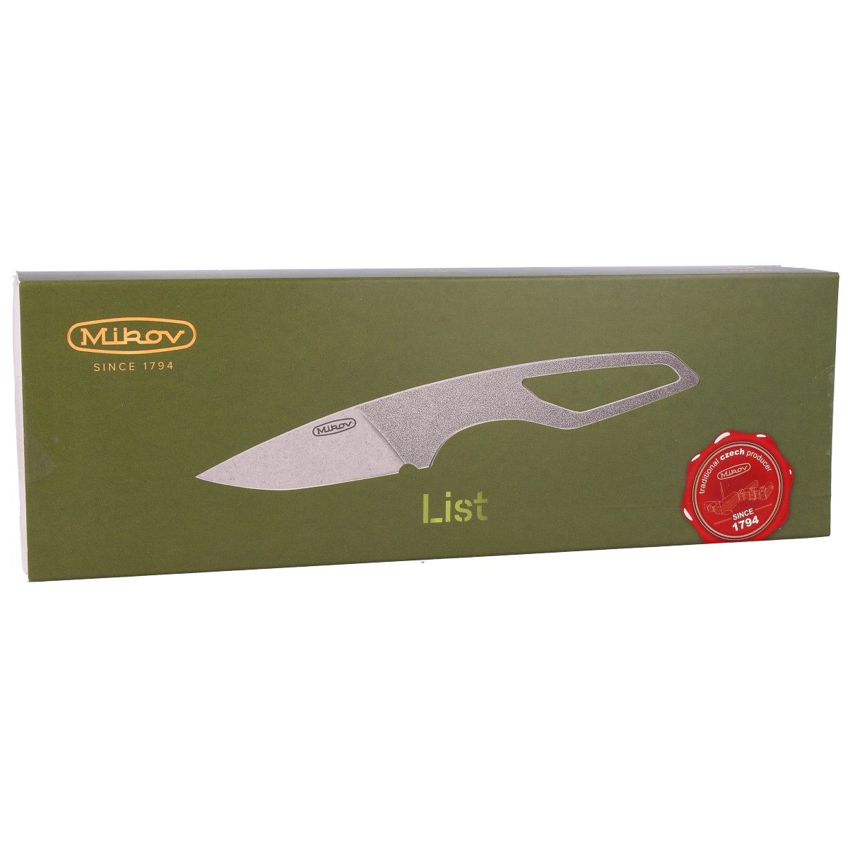 Mikov LIST, Stonewash N690 is a stunning in its simplicity work of designers from the Czech Republic. Fixed blade knife with full tang construction, made of N690 tool steel. This practical and elegant knife with compact dimensions is ideal as a handy blade for everyday use. The design was recognized by the Czech Design Academy by nominating it for the Czech Grand Design Awards 2015. When you buy this knife you are buying a perfect tool that you can carry with you in any conditions!!!