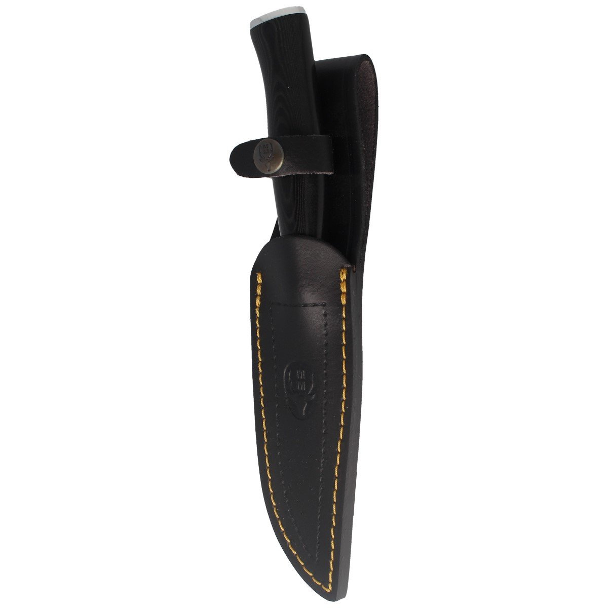 • NICKER-11M one of Muel's most interesting knives. A slender line, a fixed blade with a hidden tang. The perfect knife for collectors, lovers of hunting, active recreation. Drop Point. Black micarta handle. Bolster made of high-nickel brass.