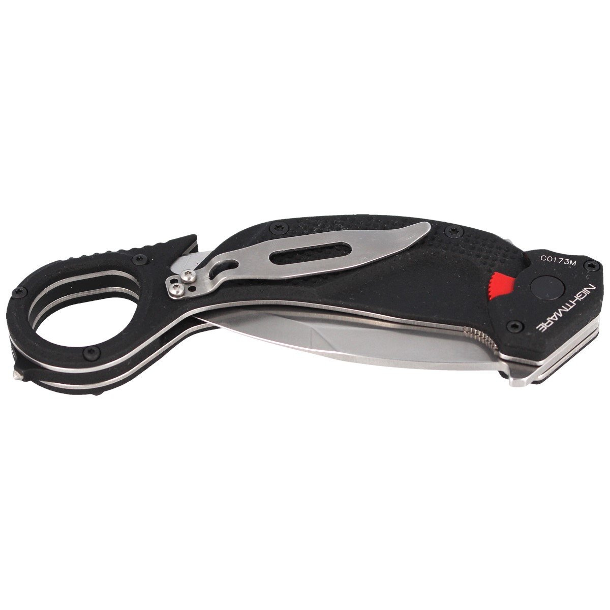 • NightMare StoneWashed advanced karambit and rescue knife in one. Double-sided after folding the blade works like a Flipper or Emerson hook, used to quickly open the blade in 2 ways.