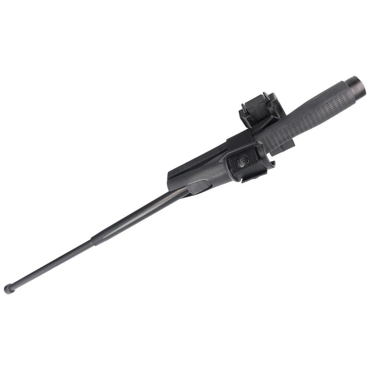 Holster - model BH-55. Opatented design allows the handle to rotate a full 360° and blocking in one of 16 items. The baton can be carried submitted or unfolded in vertical, horizontal as well as any other. The case is made of heavy-duty (heavy-duty), hardened polypropylene in black.