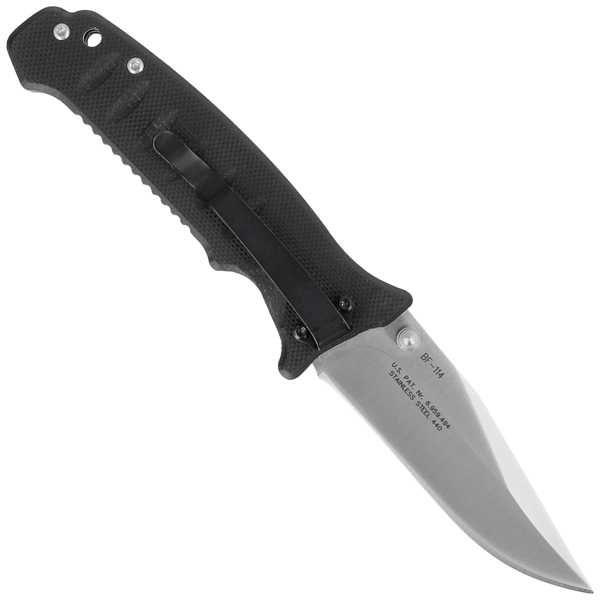 - BF-114 semi-automatic tactical knife from BlackFox. Equipped with Assisted Opening System, it opens with a slight push of the head. Low weight, spring assisted opening, G10 handle, carrying case and excellent price are the strong points of the folder