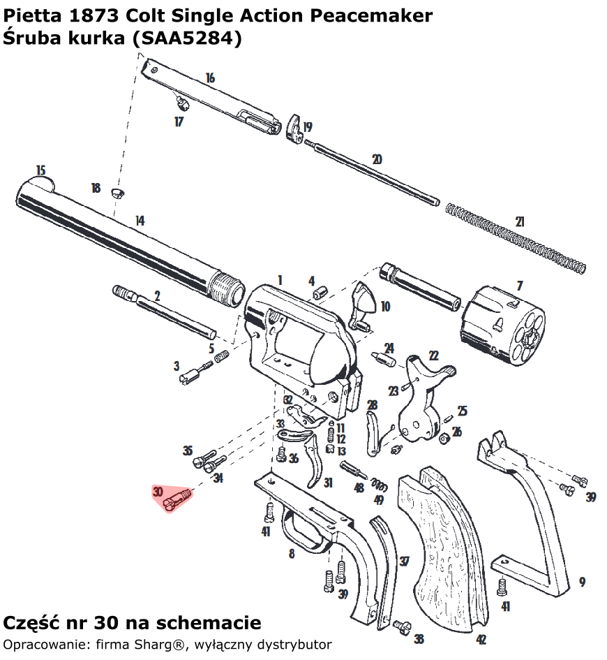 • SAA5284 (service) valve screw of the Italian company Pietta. For blackpowder revolvers 1873 Single Action Steel and 1873 Single Action Stainless.