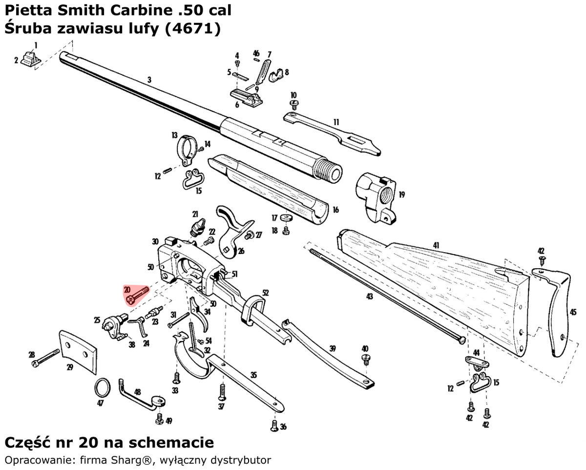 - 4671 (service) bolt of the barrel hinge of the Italian company Pietta for the Smith Carbine Cavalry (SMT50) and Smith Carbine Artillery (SMTA50) black powder rifles.
