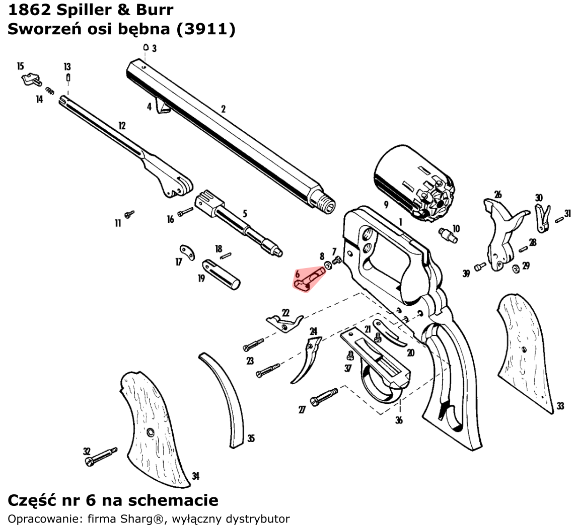 - 3911 (service) Pietta Cylinder Pin Locking Pin for 1862 Spiller & Burr black powder revolver. 36 inch.