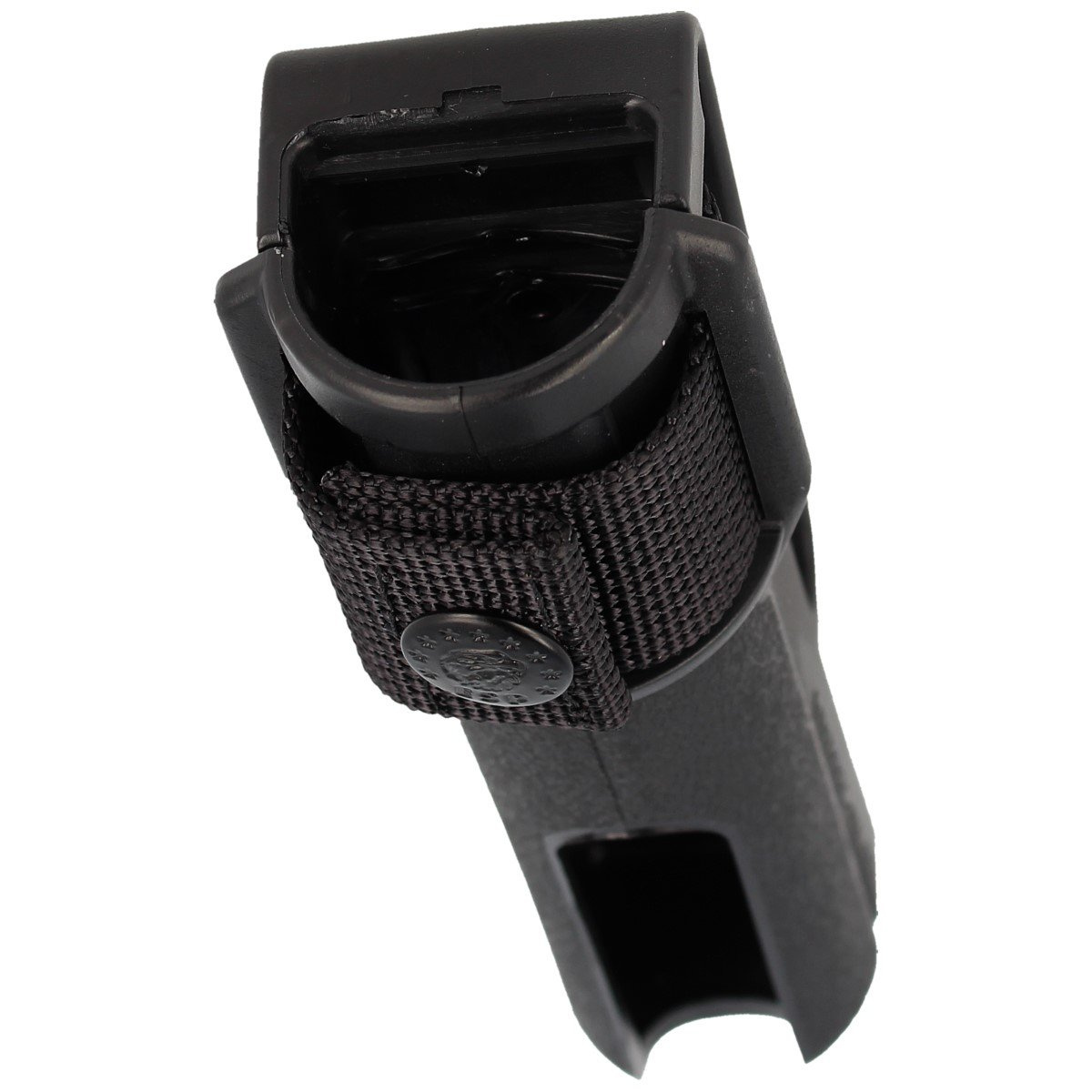 Pouch with slip-on attachment for a belt up to 54 mm wide.The patented design allows the baton to be carried when folded and unfolded in a vertical position.