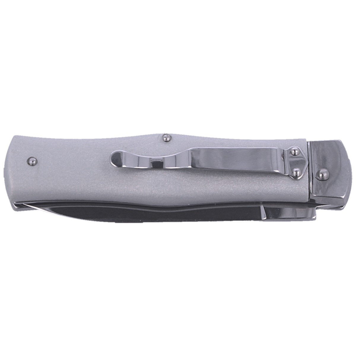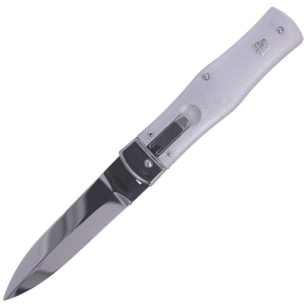Predator ABS Gray, Clip automatic knife type swichblade from the Czech company Mikov from Mikulasovic with a clip and ABS facings in gray pearl color. This region has specialized in the production of cutlery since 1794, being called "Czech Solingen".