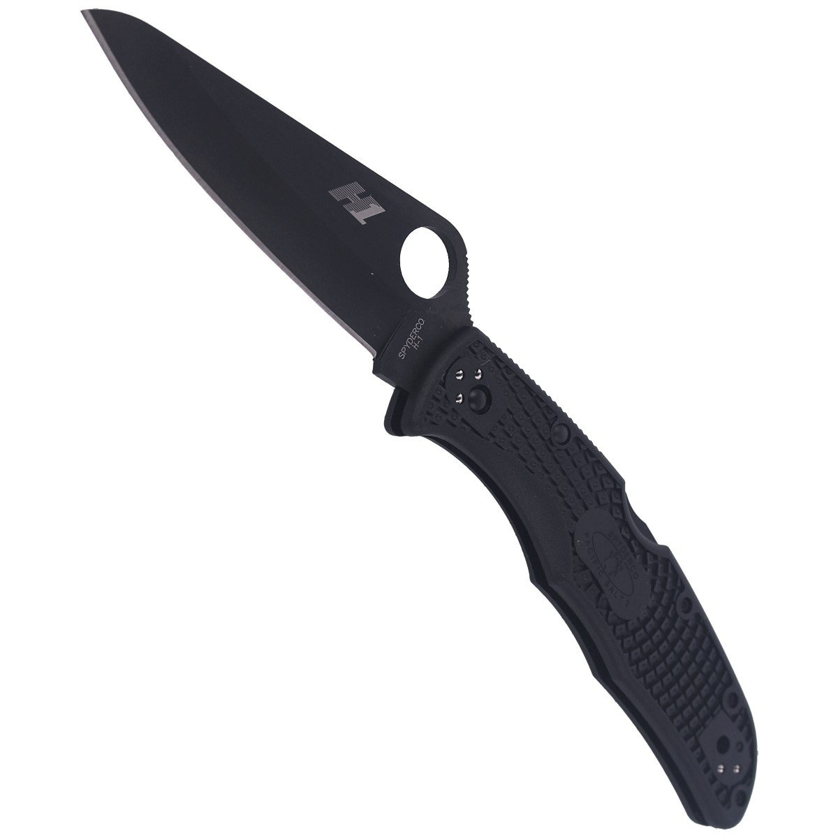 Blade - with Clip Point profile, 2.5 mm thick. The blade is covered with scratch resistant matt non-reflective TICN (Non-Reflective Titanium Carbonitride) coating in black color. The smooth Plain blade has a Hollow Grind for effective and deep cuts. Enlarged 14mm round SpyderHole (Spyderco patent) increases the thumb rest hump (notched ramp) and allows opening the knife with wet hands and a glove. Solid Back-Lock with additional cut-out designed by Boye Detent, preventing accidental release of the lock when the knife is firmly gripped.