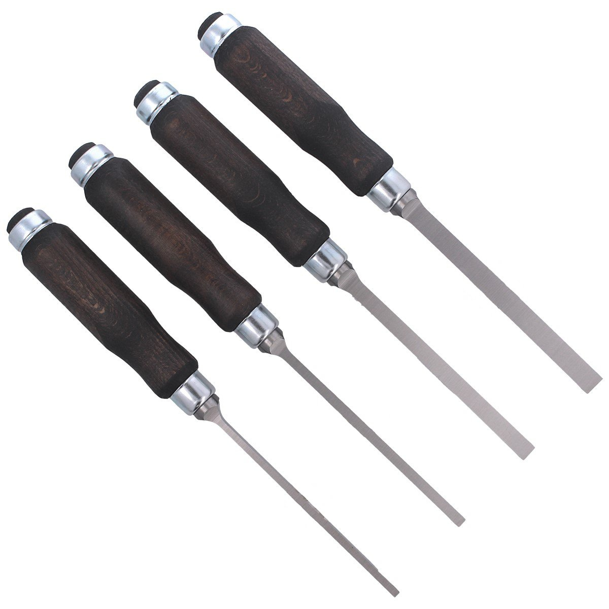 863600 - 4-piece set of solid socket chisels from the Narex Profi series for heavy carpentry and joinery work. For deep chiselling and drilling of holes for carpentry and joinery joints. The convergent shape of the blades prevents the chisels from jamming while working.
