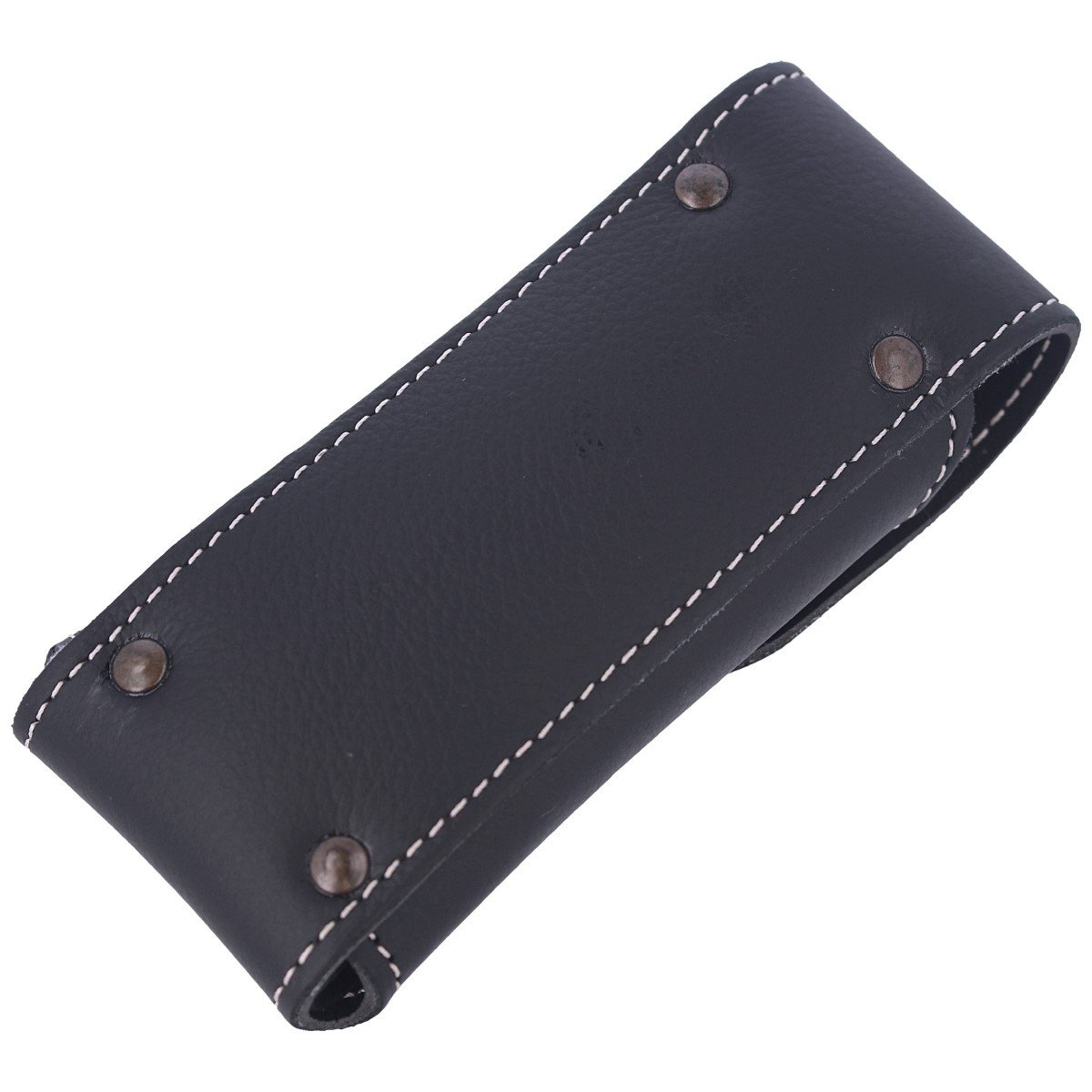 Made of black natural leather with an embossed manufacturer's logo. The edges of the holster were sewn with a decorative seam. Fastened with a Prym type snap. Fastening to a belt or equipment allows you to carry the knife in a vertical position.