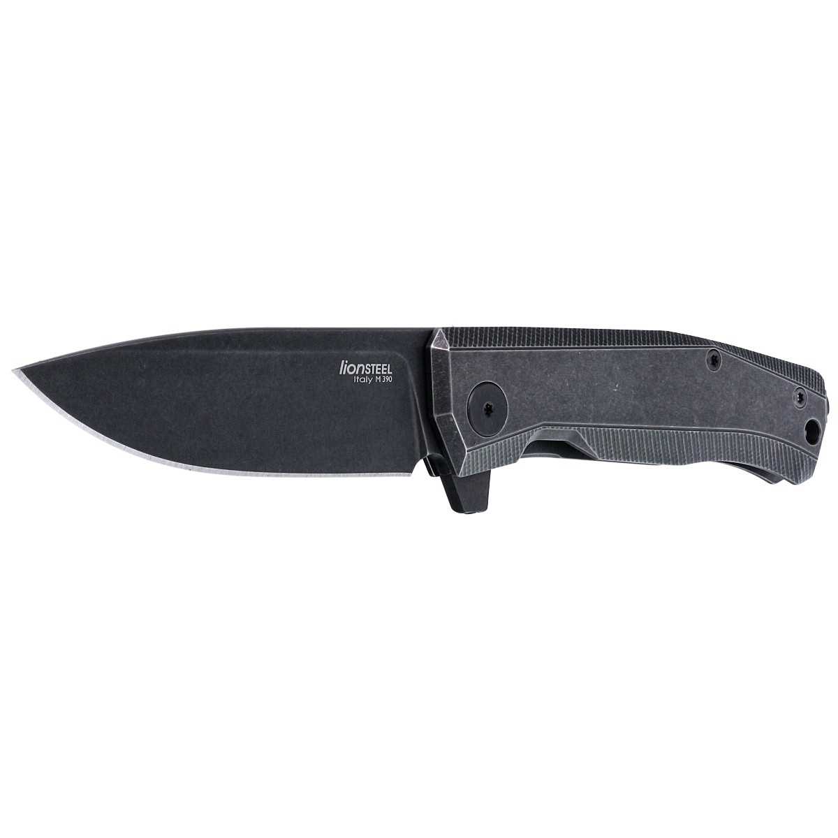 Myto Old Black Titanium, PVD + Stone Washed a high-tech Hi-Tech folder with a durable frame-lock and liners in Old Black, titanium coating aging finish. An exceptional E.D.C. knife by the Italian LionSteel manufactory. Features M390 sintered steel blade, "ReF" fin on the underside of the blade, Double Crown ball bearing system and titanium clip. Comes with LionSteel Hand (#HY 68), Torx T6, Torx 8 adjustment wrench along with Hex wrench for glass breaker screw.