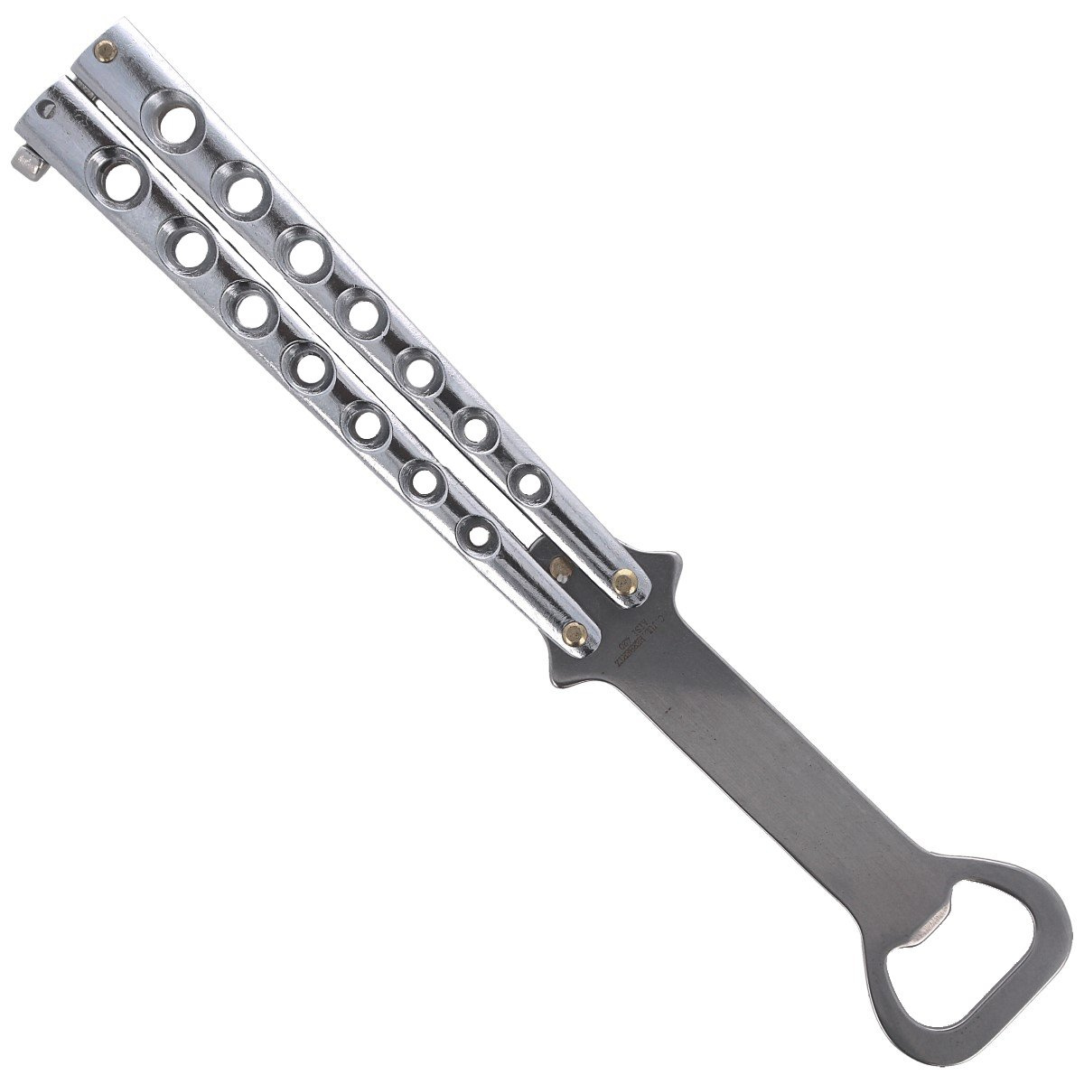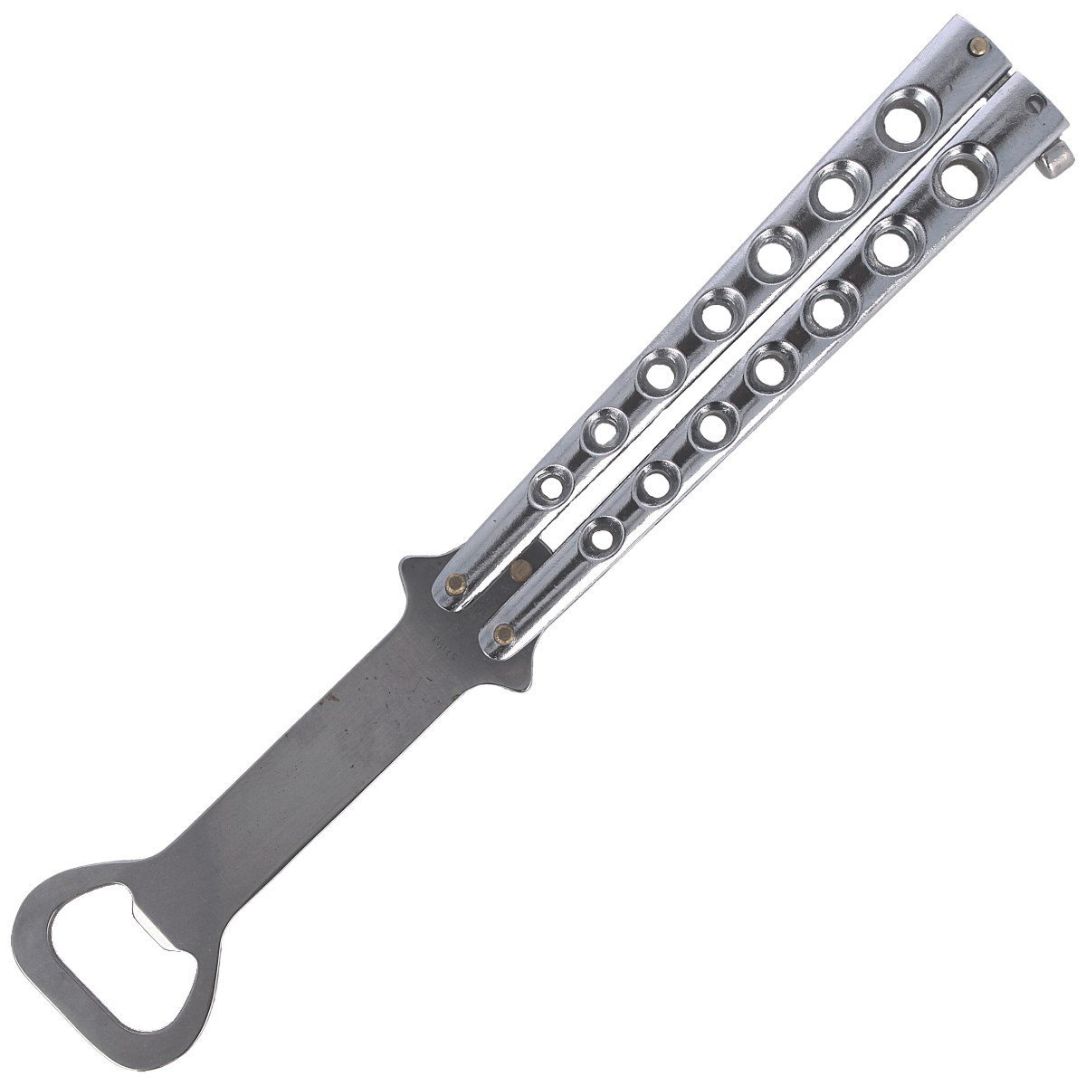 - Bottle opener by Herbertz CJH. The lever of the opener made of 420 stainless steel. Folding arms identical to those of butterfly knives. Notch type locking mechanism allows the handle arms to be locked in open or closed position.