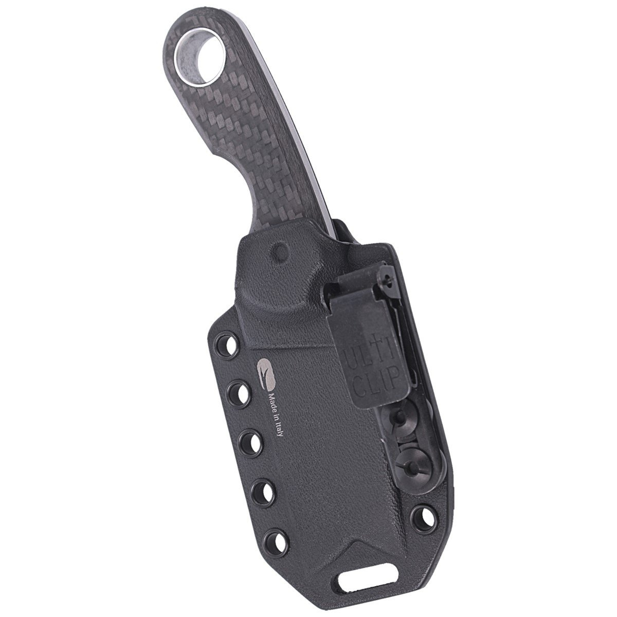 Scabbard - during designing a great emphasis was put on the ease of carrying and retrieving the knife. Flat, lightweight holster made of Kydex material. It comes with UltiClip, a practical multi-position clip designed to attach to a pocket or trouser belt. This allows the Berus to be used as a clinch pick (short knife for ultimate defense in a clinch). Clinch Pick knife, a destructive tool in direct contact, ideal for self-defense also from a sitting position. Additionally, the scabbard is compatible with the Tek-Lok mount as well as it can be hung around the neck like a neck knife.
