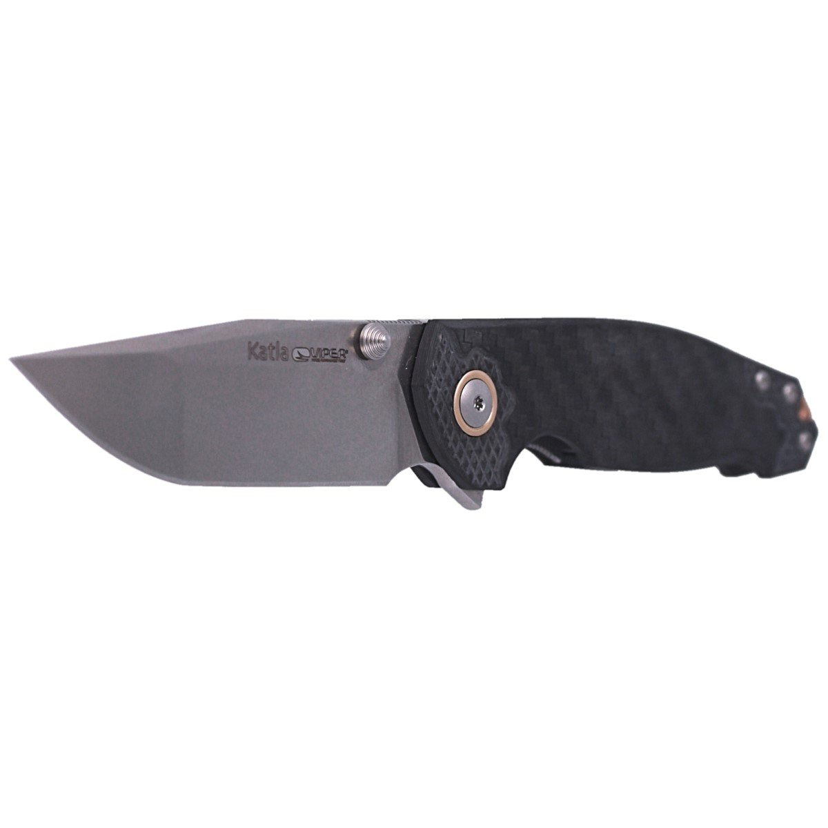 • Katla Carbon Fiber 3D CNC, Satin a unique knife aimed at a discerning audience, combines elegant style with the finest materials. The design by Jesper Voxnaes combines 2 different blade opening options, ball bearing pivot, deep clip, Viper brand quality.