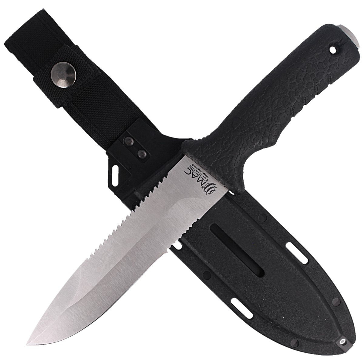Blade - solid Drop Point. Combo blade, Plain and Serrated (saw blade) with Flat Grind for excellent cutting-edge geometry and low friction cutting performance. On the back of the blade a multifunctional saw for cutting hard materials, plastics and fibrous materials such as ropes, cords, lines or nets.