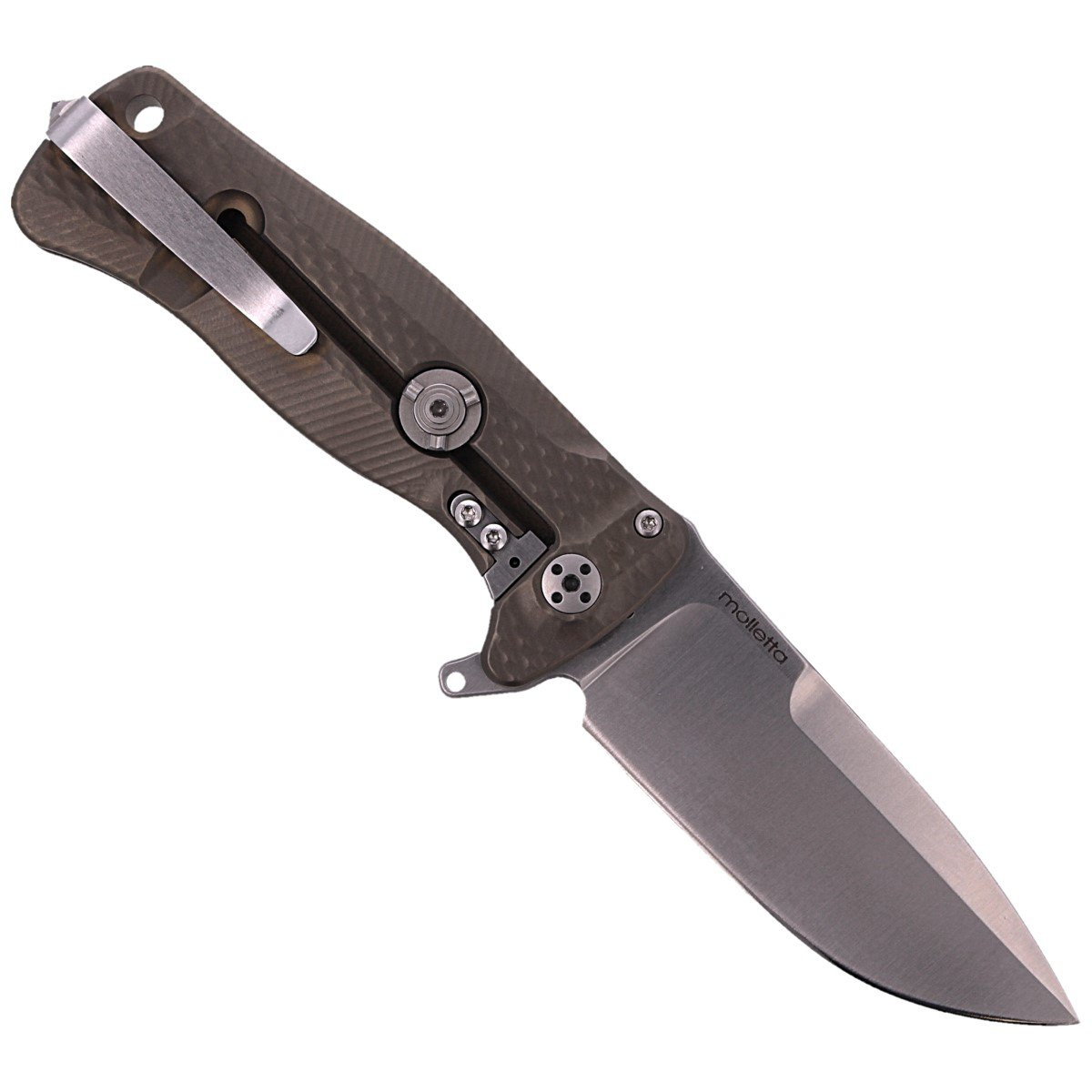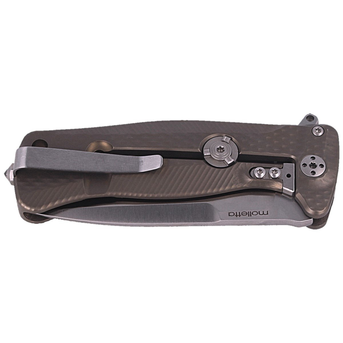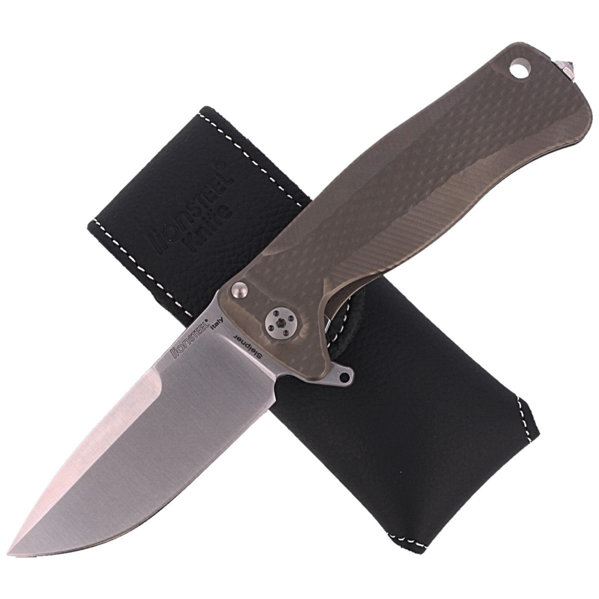 • SR22 Bronze Titanium, Satin Finish a folder from Italian manufactory LionSteel with exclusive Solid technology. Sleipner, Swedish high alloy universal tool steel with high wear and chipping resistance. Frame-Lock and RotoLock blade locks