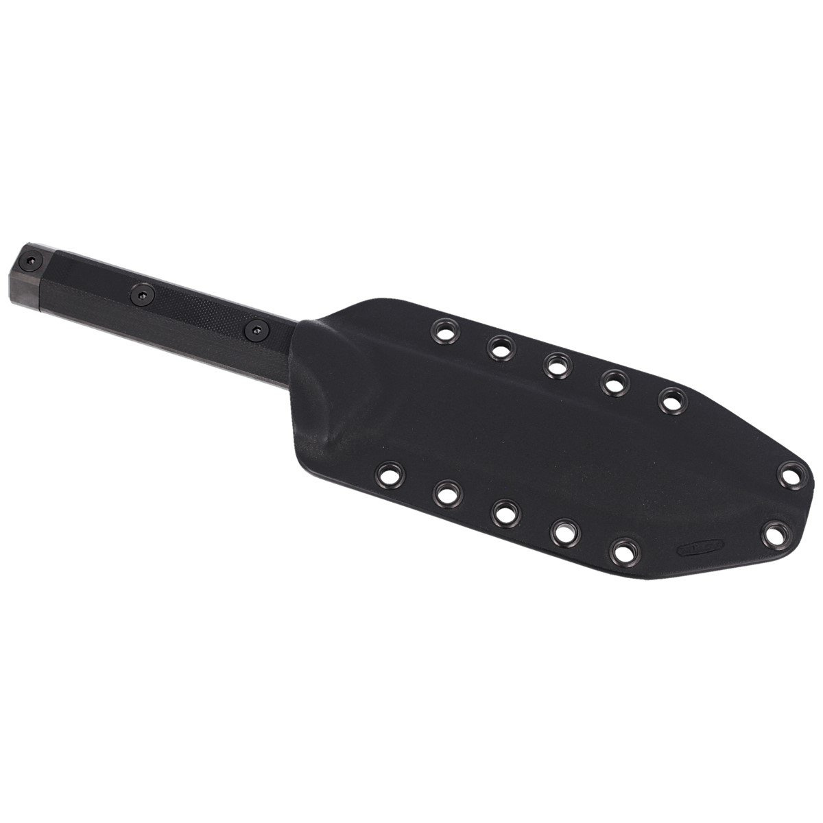The sheath is made of black kydex, on its edges there are holes, thanks to which you can lanyard the knife with paracord or install different kinds of carrying systems.